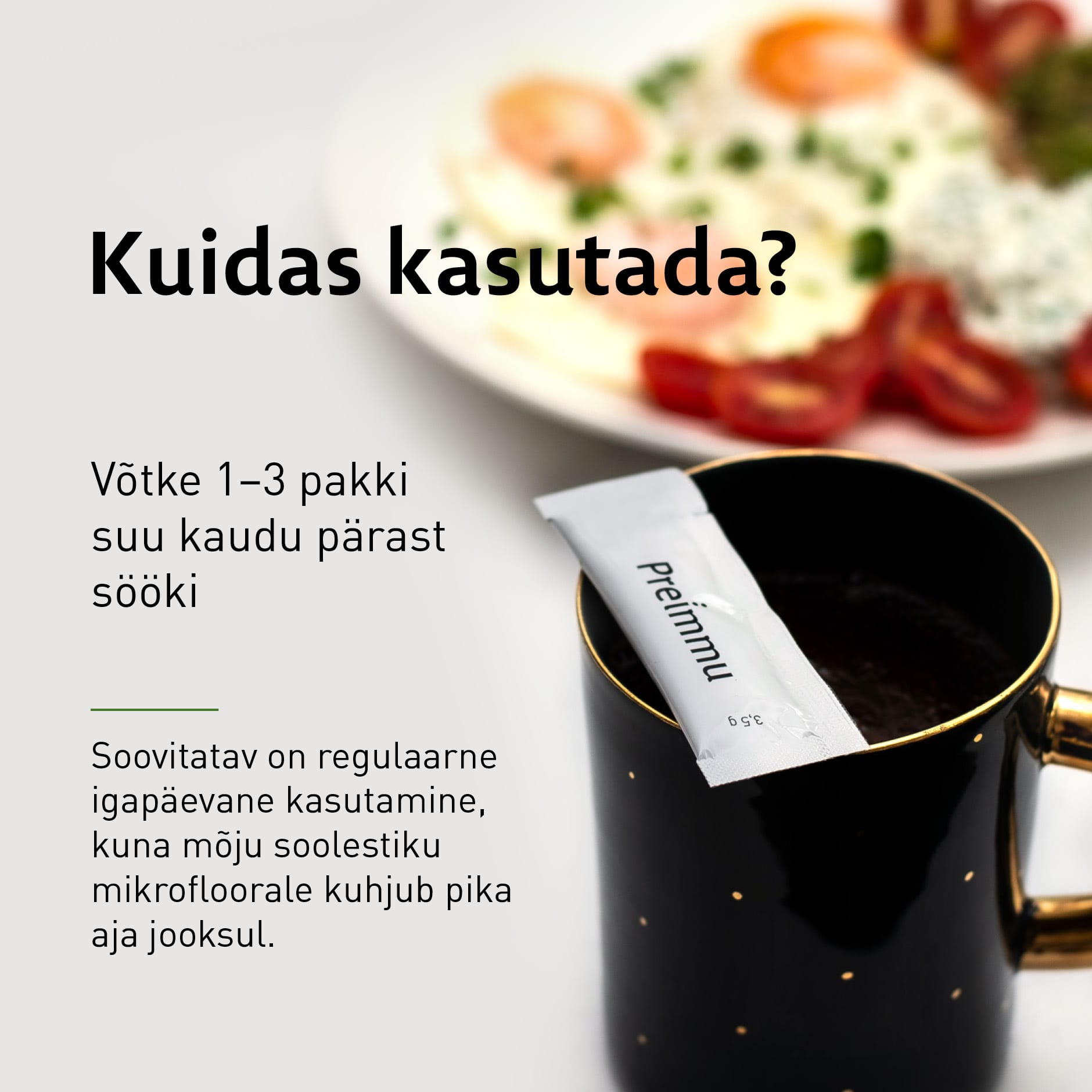 Toidulisandid ei asenda täisväärtuslikku ja tasakaalustatud toitumist.